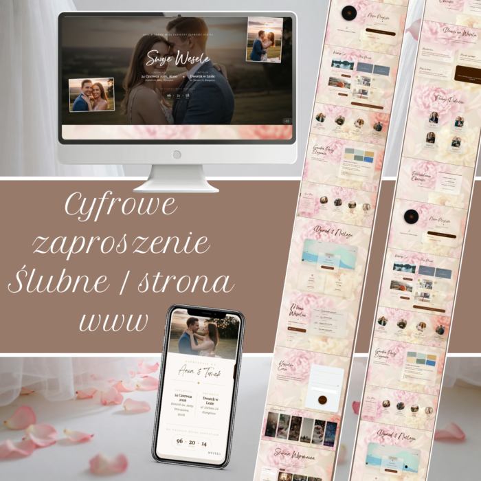 Strona przepiękna, wybraliśmy ciemną zieleń, która super pasowała do naszej leśnej sali. Odejmuję jedną gwiazdkę tylko dlatego, że jedna starsza ciocia nie ogarnęła linka i formularza, więc i tak musieliśmy dzwonić i dopisywać ją ręcznie. Ale to raczej wina cioci, nie strony 😉 Sam projekt i kontakt pierwsza klasa. Polecam!